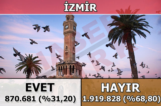 İzmir'de 1 Kasım 2015 seçimlerinde yüzde 57 oy alan "Hayır Cephesi", halk oylamasında da yüzde 68,80 ile seçmenin tercih ettiği taraf oldu