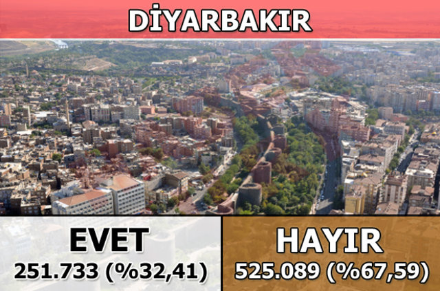 Diyarbakır'da 1 Kasım 2015 seçimlerinde yüzde 22,2 oy alan "Evet Cephesi", halk oylamasında yüzde 32,41 oy aldı