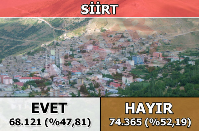 Siirt'te 1 Kasım 2015 seçimlerinde yüzde 40 oy alan "Evet Cephesi", halk oylamasında yüzde 47,81 oy aldı