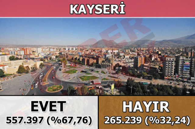 Kayseri'de 1 Kasım 2015 seçimlerinde yüzde 84,82 oy alan "Evet Cephesi", halk oylamasında da yüzde 67,76 ile seçmenin tercih ettiği taraf oldu