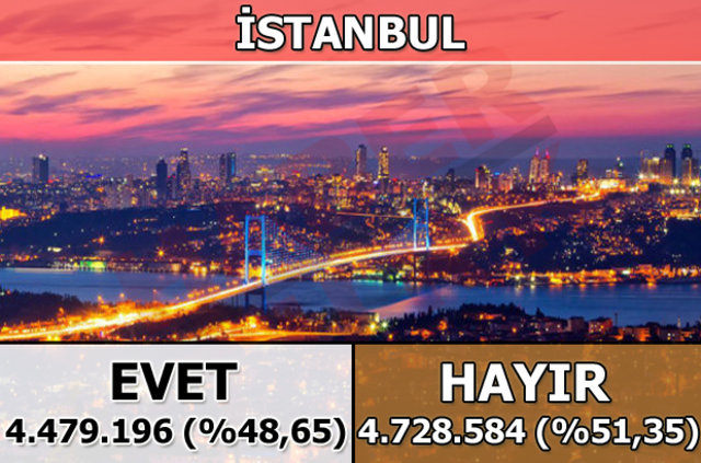 İstanbul'da 1 Kasım 2015 seçimlerinde yüzde 42,15 oy alan "hayır cephesi", halk oylamasında da yüzde 51,35 oy aldı