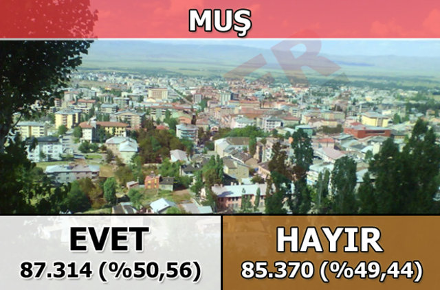 Muş'ta 1 Kasım 2015 seçimlerinde yüzde 35.9 oy alan "Evet Cephesi", halk oylamasında yüzde 50.56 oy aldı
