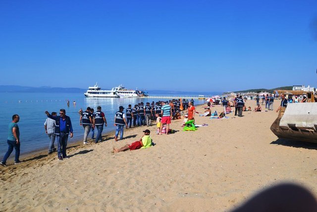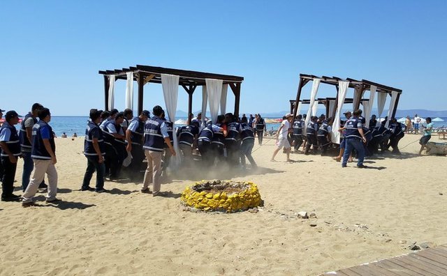 Ekipler, saat 14.30'a kadar sahil şeridinde bulunan tüm işletmeleri denetledi ve bulunmaları gereken alanların dışına taşanlara müdahale etti.