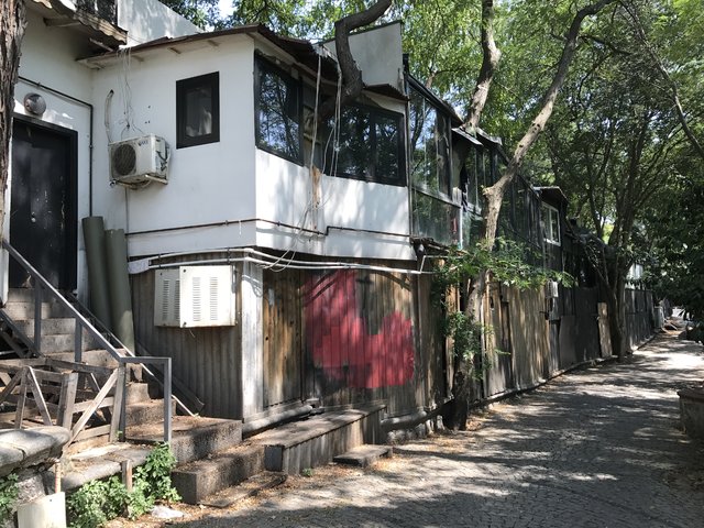 Burası da Maçka Demokrasi Parkı’nın Açelya Sokak tarafındaki girişi. Burada sıra sıra, derme çatma yapılar bulunuyor. Uzun zamandır kullanılmayan, metruk haldeki 2 katlı binalar daha önce kafe olarak hizmet veriyordu. Fakat uzunca bir süredir atıl halde. Yıkıldı yıkılacak halleriyle tepki toplayan bu barakalar, her gün parka yürüyüş yapmak için gelen İstanbulluların tepkisini çekiyor.