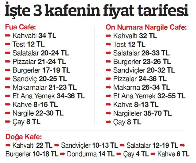Örneğin Maçka Parkı’ndaki kafelerde çay 8, kahve 15, sandviç 32 lira. İstanbullulardan aldığımız şikâyetler üzerine parkları mercek altına aldık. En çok şikâyet gelen parklardan Maçka Parkı’nda 2 kaferestoran, 2 çay bahçesi var.