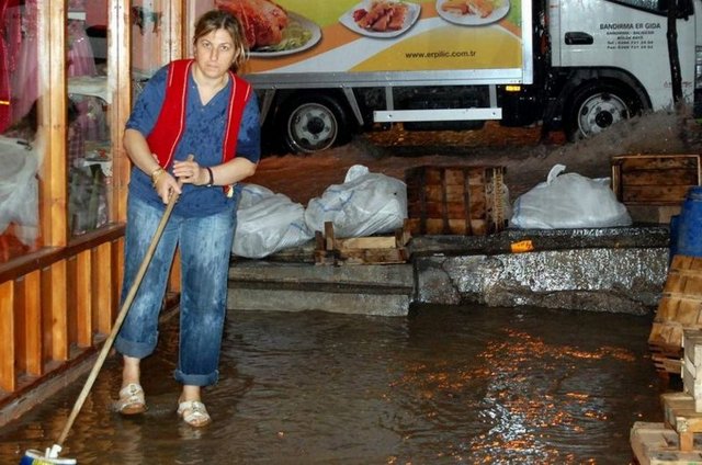Marmara Bölgesi'ni etkisi altına alan etkili yağış sebebiyle Balıkesir'in Marmara ilçesine bağlı Avşa adasında birçok ev ve iş yerini su bastı.