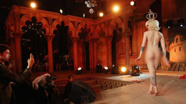 Avusturya’daki yardım balosunda Darling’in cinsel organını ve meme uçlarını taç şeklindeki yapıştırmalarla kapatarak yaptığı dansı izleyenler arasında şarkıcı Elton John, ABD eski Başkanı Bill Clinton ve şarkıcı Kelly Osbourne da bulunuyordu.