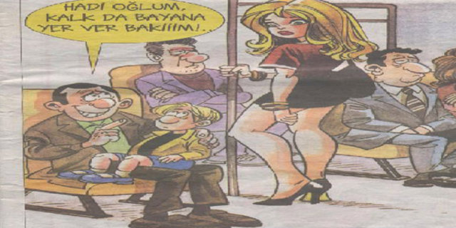 Kadın erkek eşitliğinin yerle yeksan olduğu yerlerdir toplu taşıma araçları. Erkek milleti hep ayaktadır nedense. Ayaktakileri analiz edecek olursak; dörtte biri fortçudur kesin bu cepte, su götürmez. Dörtte ikisi az sonra inecektir. Ama kafadan dörtte biri de bir ‘bayana’ yer vermiştir. Aslında helal olsun bizlere bu konuda. Yalan değil dolan değil, yurt dışında böyle bir şey yok. Bizde ‘bayana’ ayrı bir değer verildiği kesin. Kibar milletiz çok şükür, ha aramızda mandıra kaçkını yok mu oturduğu yerden kıpırdamayan, var ne yazık ki. Ama genel olarak takdire şayan bir milletizdir bu konuda. Erkeklerimize sesleniyoruz otobüste minibüste olur ya dalıp gitmişsinizdir, kulağınıza çalınırsa “Bayana yer verelim” diye bir ses, hemen kalkın ayağa da alem erkek görsün. - 13