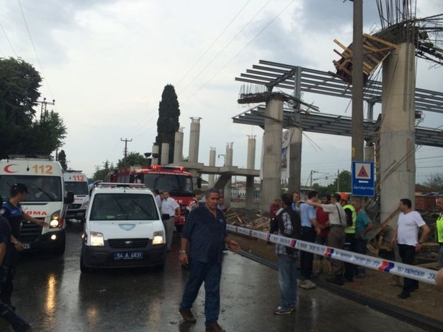 Sakarya'nın Arifiye ilçesinde yapımı devam eden yüksek hızlı tren istasyonu inşaatında 2. kattaki iskele çöktü. 6 işçi yaralandı. Ulaştırma Bakanı Lütfi Elvan, Habertürk'e yaptığı açıklamada, "Sakarya'ki Arifiye istasyonu çökmedi, istasyon binası inşaatının ikinci katındaki iskele çöktü. 6 işçi yaralandı. Yaralı işçiler Sakarya Devlet Hastanesi'ne kaldırıldı" dedi.
