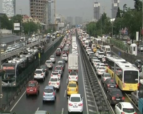 Etkili yağış iş çıkışı trafiği ile birleşince yollardaki araçlar adeta durma noktasına geldi.