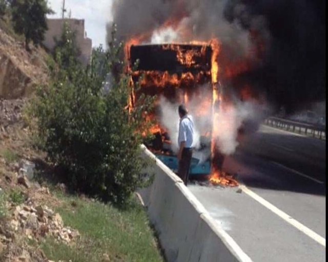 Dumanları farkeden sürücü Arslan otobüsü durdurmak istedi. Ancak iddiaya göre otobüsün frenleri tutmayınca, araç yol kenarındaki bariyerlere çarparak yaklaşık 100 metre sürüklendi. Otobüs sürüklenirken, arka kısımda başlayan yangın otobüsün içine sıçradı. Bu sırada peşpeşe patlamalar meydana geldi.