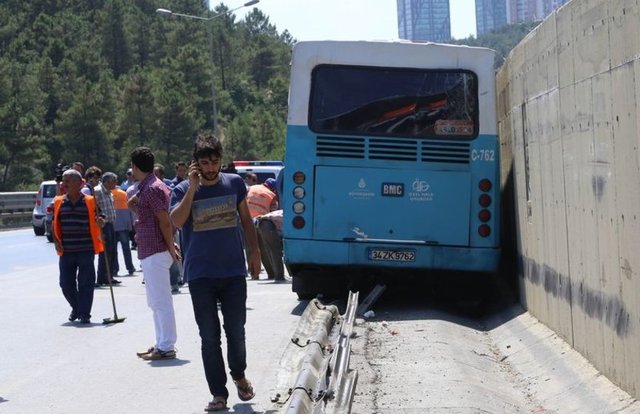 Ümraniye'de kontrolden çıkan halk otobüsünün kaza yapması sonucu çok sayıda yolcu yaralandı. Otobüsün yol kenarındaki duvara çarpması sonucu kapılar açılmayınca yolcular camları kırıp dışarı çıktı.