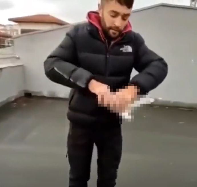 Güvercinin çırpınarak öldüğü görüntü, sosyal medyada tepki topladı. Görüntüler üzerine Emre D., polis ekiplerince yakalanarak gözaltına alındı. Emre D., ifadesi alındıktan sonra idari para cezası uygulanarak serbest bırakıldı.