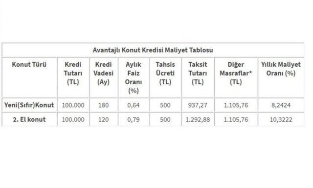 Yıllık maliyet oranı; faiz, tahsis ücreti, ekspertiz ücreti ve ipotek tesis ücretini kapsamakta olup örnek vade ve tutar üzerinden hesaplanmıştır.