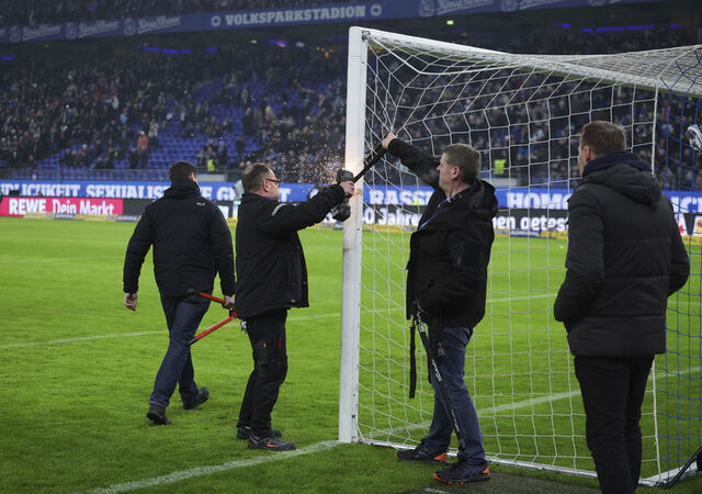 Hamburg-Hannover maçında ilginç anlar! Kale direğine bisiklet kilidi bağladılar!