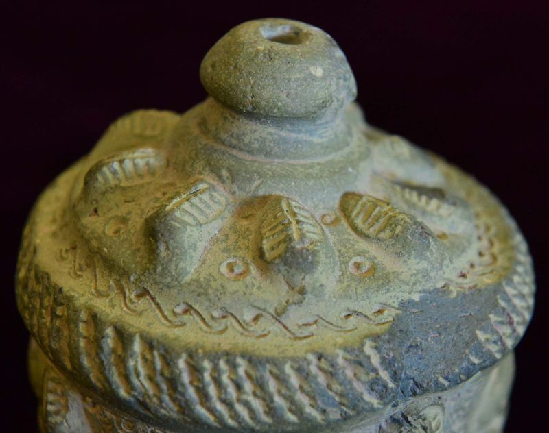 Kabın pişmiş topraktan yapıldığını ifade eden Önal, kabın ağzındaki küçük deliğin de sıvının dökülmemesi için bir tıpayla kapatıldığının tahmin edildiğini söyledi.