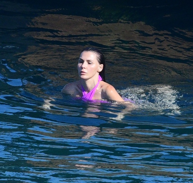 40 yaşındaki oyuncu, sıcak havadan bunalınca da kendini Ege'nin serin sularına bıraktı.