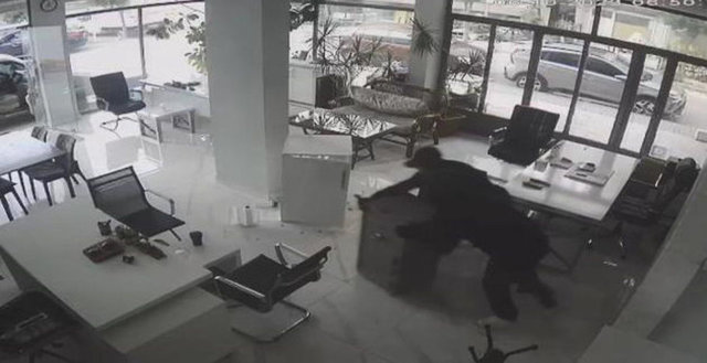 Galerici Abdülkadir Sayılgan, "Ticari bir araçla geliyorlar. Cam kırıklarını da görüyorsunuz. Tam burada bulunan aracımıza yanaşarak camını patlatarak içindeki 400 bin lira değerindeki hayalet ekranı komple söküyorlar. Sonra aracı buraya yanaştırıp levyeyle kapıyı açıp dolapları karıştırıyorlar" dedi.
