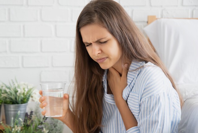 Bir dakika boyunca buzlu su ile gargara yapın. Soğuk su diyaframınızdaki tahrişi yatıştırmaya yardımcı olacaktır.