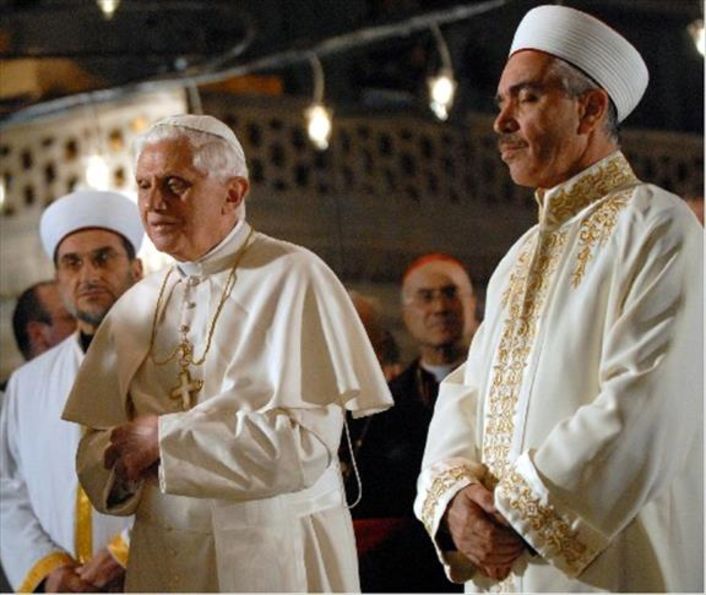 Papa XVI. Benedictus, Ayasofya Müzesi'ne giderek Altın Ziyaretçi Defteri'ni imzaladı. Daha sonra hemen karşısındaki Sultanahmet Camii'ne gitti, ayakkabılarını çıkararak içeri girdi, kıbleye dönerek dua etti. Bu ziyaret, Papa'nın İslamiyet'i şiddetle özdeşleştirdiği bir konuşmasından 2 ay sonra gerçekleştiği için Papa ile Müslüman dünyasının arası da gergindi.