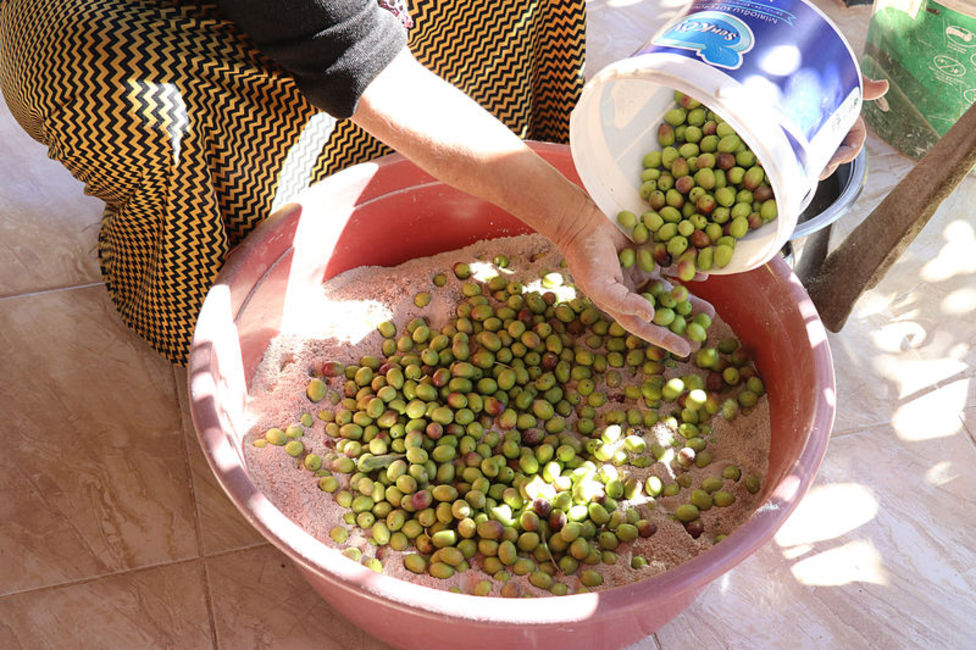 Zeytin bahçelerinde hasada başlayan kadınlar, topladıkları ürünleri kahvaltılık için özenle seçiyor. Eziği ya da çürüğü olmayan yeşil zeytinleri tatlandırmak için yemek ocakları veya ekmek tandırlarından odun külü toplayan kadınlar, külü bir kap içerisinde sıcak suyla harmanlıyor.