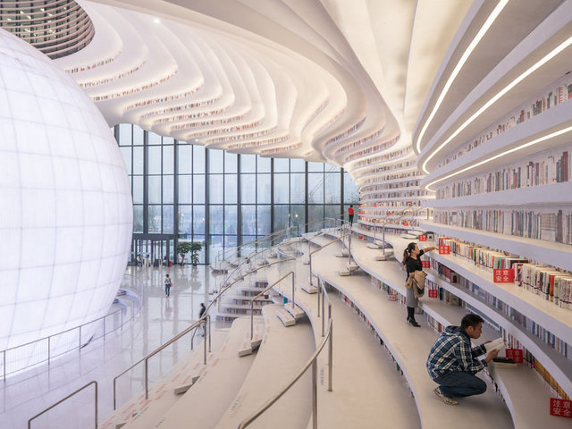 Çin'in Tianjin kentindeki dev kütüphane 2017 yılının kasım ayında açıldı.Yapımı 3 yıl süren, toplamda 1.2 milyon kitap barındırabilen kütüphane 3 bin metrekareden daha geniş bir alan üzerine kurulu.