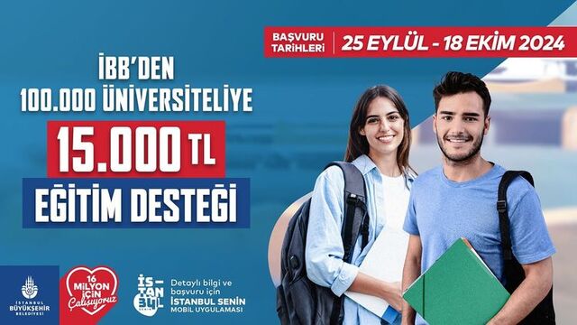 İBB, 100 bin öğrenciye 15 bin TL burs verecek. Burs, her biri 5 bin TL olmak üzere üç taksit halinde yatacak.