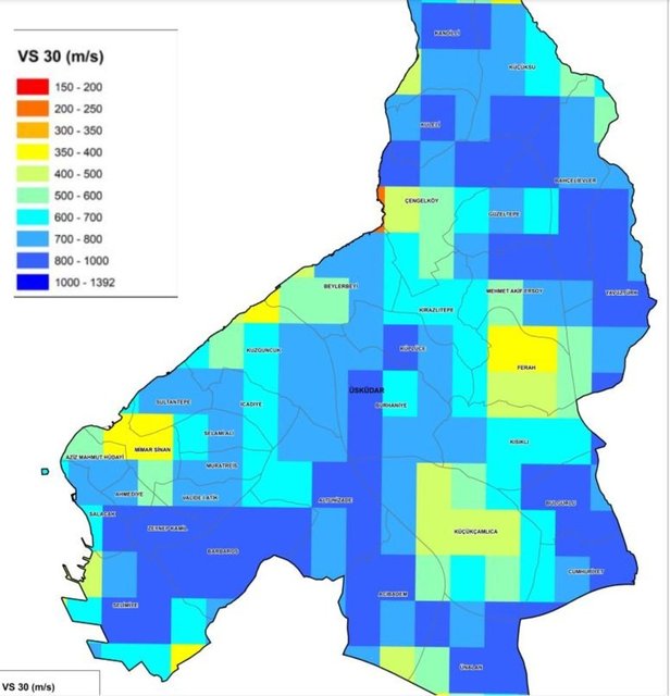 İBB tarafından hazırlanan rapora göre, yerel zemin koşulları Vs30 olarak adlandırılan parametreye göre hesaplanmıştır. Vs30 parametresi 180m/s’den küçük ise zayıf zeminleri, 760 ya da 800m/s den büyükse kaya ortamları yansıtmaktadır.