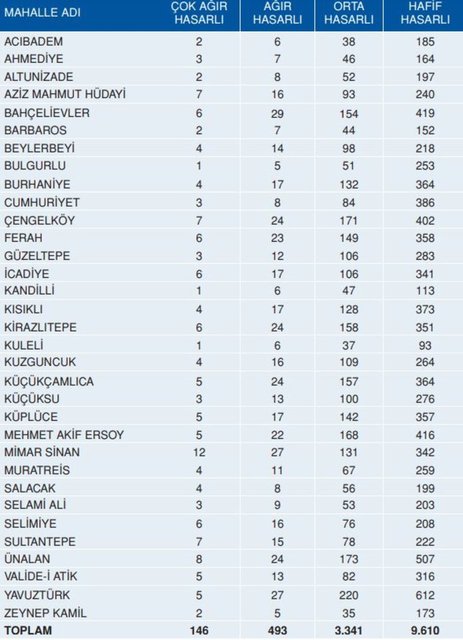 Üsküdar Olası Deprem Kayıp Tahminleri Kitapçığı'na tıklayarak ulaşabilirsiniz