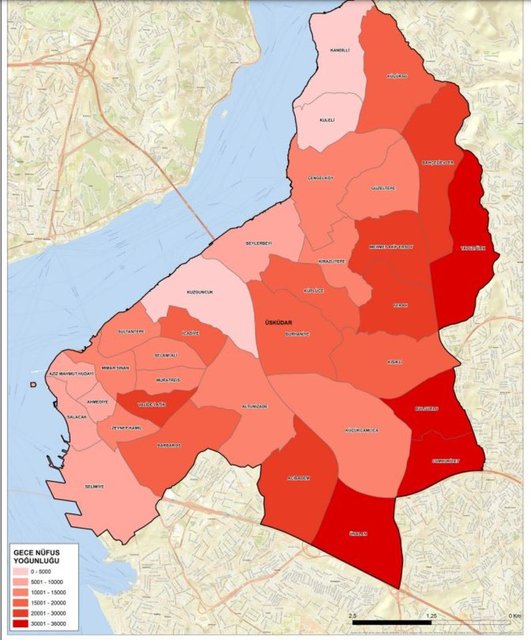 ÜSKÜDAR İLÇESİ GECE NÜFUS YOĞUNLUĞU DAĞILIMI
