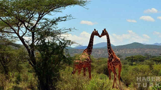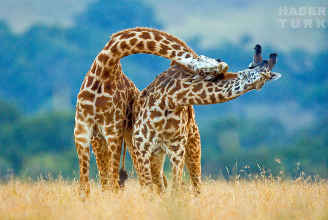 Erkek zürafalar uzun boyunlarını çiftleşme hakkı elde etmek için birbirleriyle kavga ederken de kullanıyor.