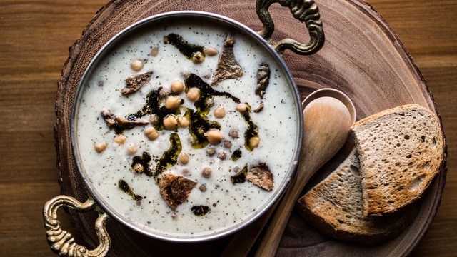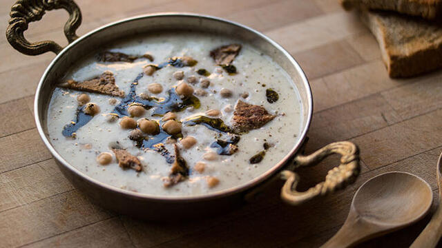 Bu arada 2 su bardağı süzme yoğurt, küçük bir tüm yumurta,1 yemek kaşığı sadeyağ veya zeytinyağı,1 tatlı kaşığı un bir tencerede birleştirin ve çok kısık bir ateşte sürekli aynı yönde karıştırarak pişirin. Bu pişirme sırasında, yoğurt üzerin azar azar pişen etin suyundan ilave edin. Pişen yoğurt kabarıp kaynamaya başlayınca, içine yuvarlanan köfteler, kalan et suyu, et, nohutun hepsini ilave edin. Bir taşım kaynadıktan sonra yeterince tuz ilave edin ve altını kapatın.