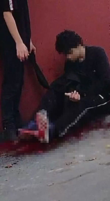 Öğrencilerin okul önünde kavga etmesi ve bir öğrencinin kolundan bıçaklanma anı cep telefonu kamerasına saniye saniye yansıdı.