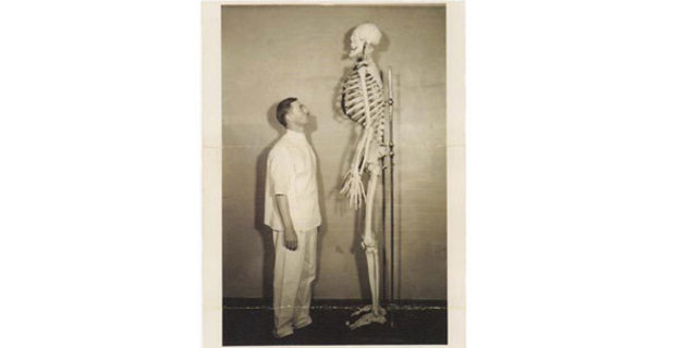 9- Dev Adam: John Aasen'e ait olan bu iskelet tam 2 metre 14 santim uzunluğunda... 1890-1938 yılları arasında yaşamış olan Aasen yıllarca sirklerde çalışmış ve boyu sebebiyle Hollywood filmlerinde 'öcü' rollerinde oynatılmış.