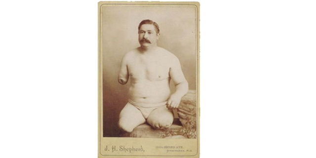 8- Üçlü Ampute: Fotoğrafta görülen 32 yaşındaki adam bir tren kazasında iki bacağı ve bir kolundan çok ağır derecede sakatlanmış. Yapılan başarılı ameliyatla üç uzvu da başarılı bir şekilde ampute edilir ve Amerika'da yapılan ikinci başarılı ameliyat olarak tarihe geçer.