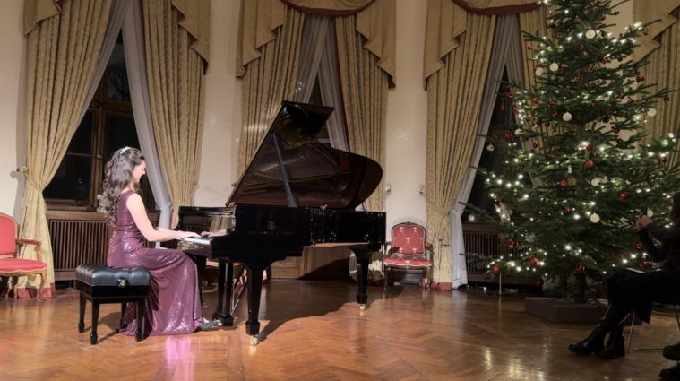 Genç piyanist İlyun Bürkev, aralık ayı konser turnesinin ilk durağında Prag’da, kentin en seçkin tarihî mekânlarından biri olan Lobkowicz Sarayı’nda unutulmaz bir resitale imza attı. Almanya Büyükelçisi Peter Reuss’un ev sahipliğinde gerçekleşen ve Avrupa kültür hayatının en önemli duraklarından biri sayılan sarayın büyüleyici atmosferinde sahne alan Bürkev, klasik repertuvara getirdiği derinlikli yorumuyla davetlilerden büyük alkış aldı. Bach, Chopin, Schumann ve Beethoven’dan oluşan program, genç piyanistin müzikal olgunluğunu ve yorum gücünü bir kez daha ortaya koydu.