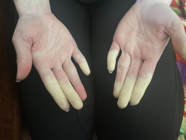 5. "Raynaud sendromu alevlendiğinde eşimin elleri böyle gözüküyor."