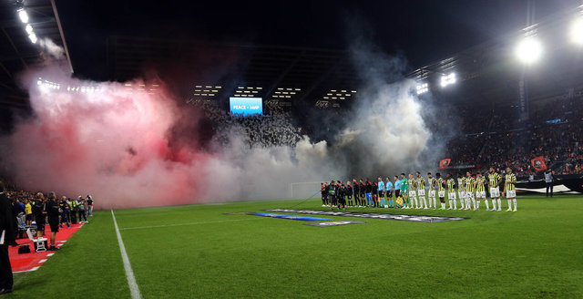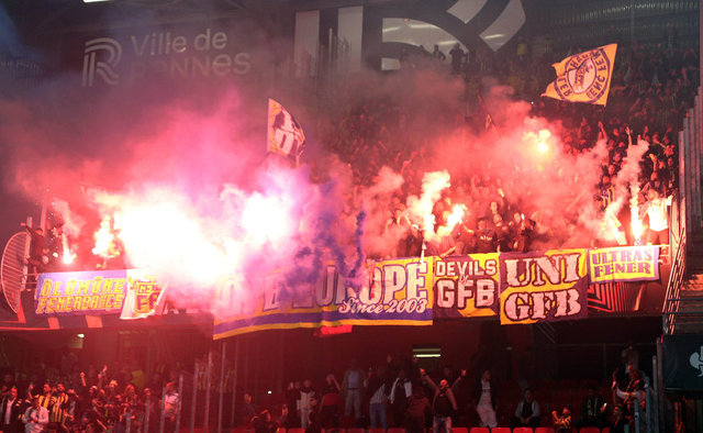 Rennes ile Fenerbahçe arasında oynanan karşılaşma, 2 dakika kadar geç başladı. Hakem başlama düdüğünü çalmadan önce Rennes kale arkası tribünlerinde meşaleler yakıldı.
