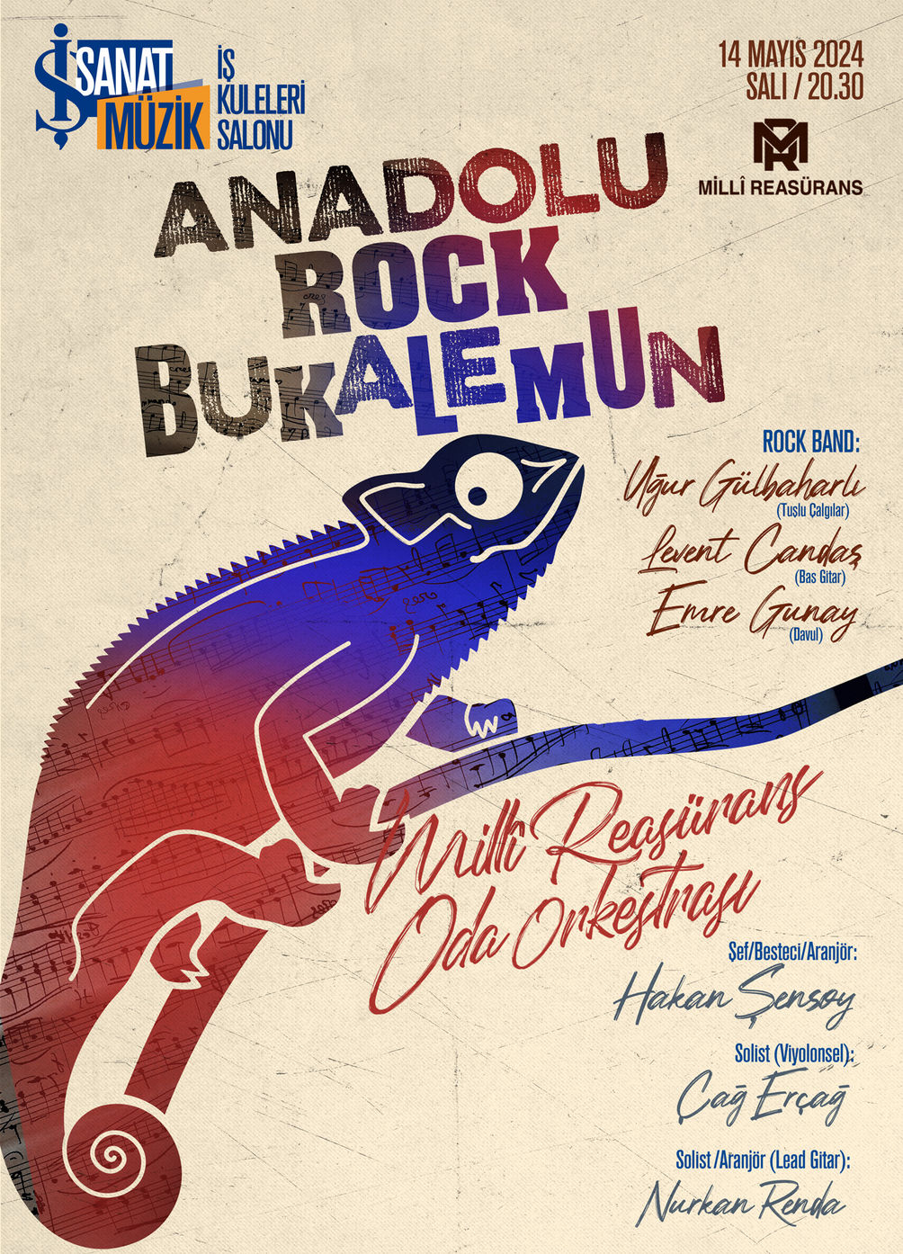 İş Sanat, Millî Reasürans Oda Orkestrası’nı “Anadolu Rock-Bukalemun” konseri 14 Mayıs akşamı 20.30’da İş Kuleleri Salonu’nda gerçekleşecek.