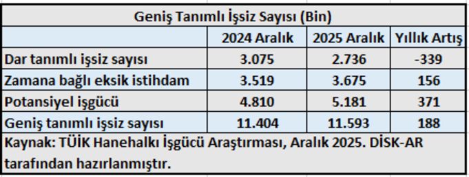 GENİŞ TANIMLI İŞSİZ SAYISI 2025’TE ARTTI