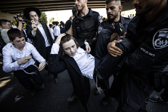 Polis, direnen en az 10 Harediyi gözaltına aldı.