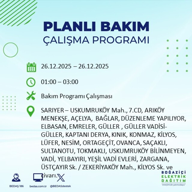 İstanbul 26 Aralık elektrik kesintisi! Hangi semtler etkilenecek?