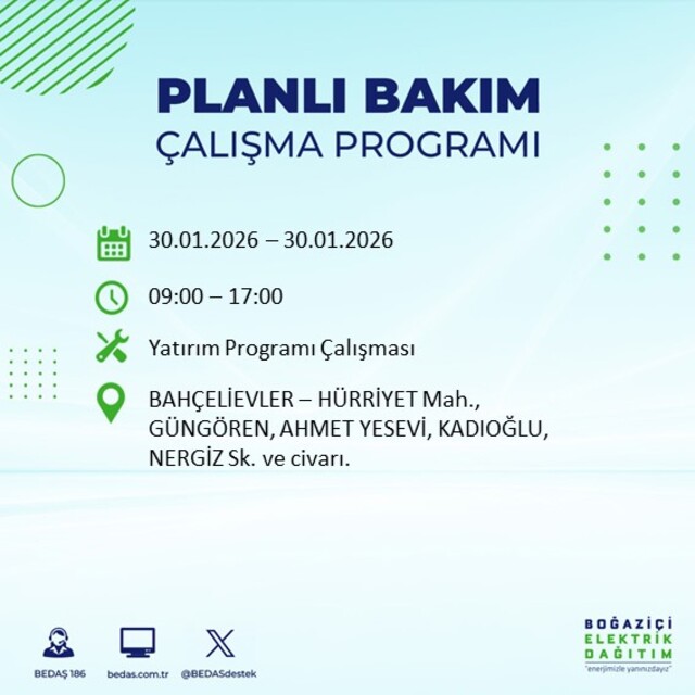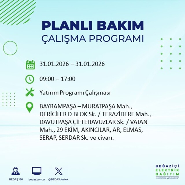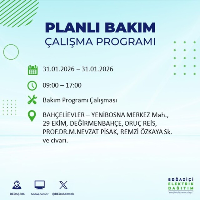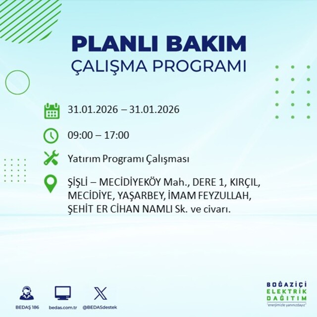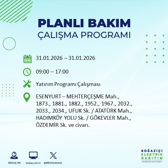 BEDAŞ duyurdu: İstanbul'da 16 ilçede elektrik kesintisi! 31 Ocak elektrikler ne zaman gelecek?