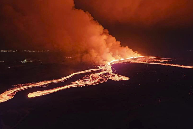İzlanda'daki yayın kuruluşu RUV'un haberine göre, Grindavik kasabasının kuzeyinde yerel saatle 20.00 sularında patlayan yanardağ lav püskürttü.