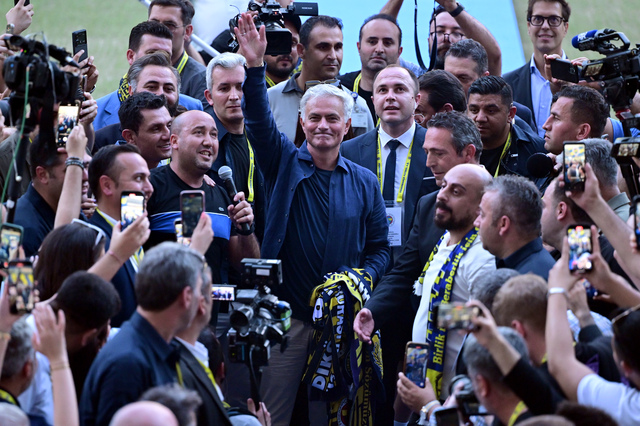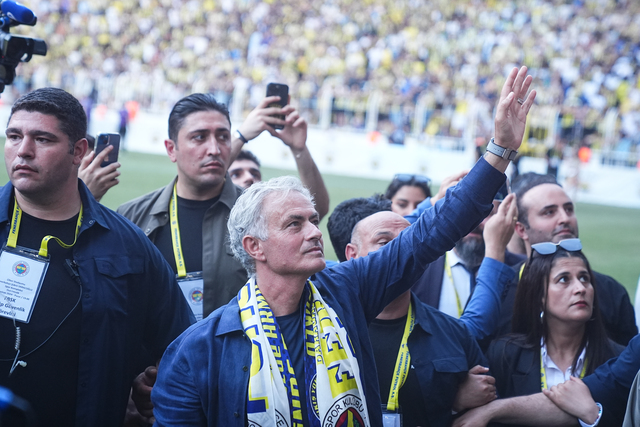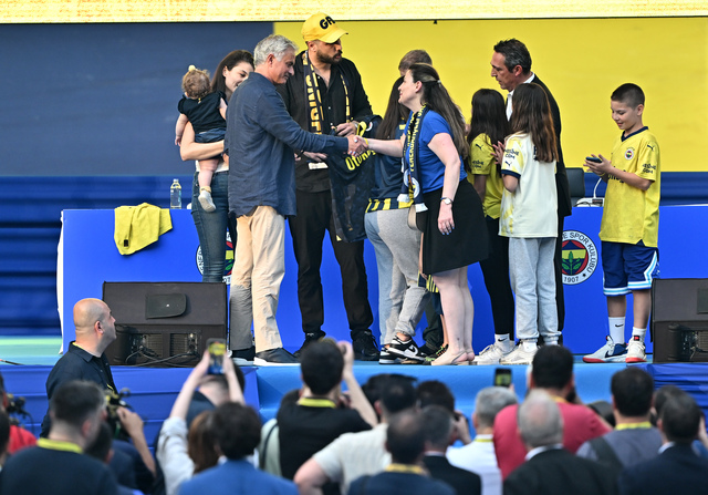 Açıklamaların ardından tribünlerden seçilen taraftarlarla kendisini Fenerbahçe'ye bağlayan sözleşmeye imza atan Jose Mourinho, daha sonra tribünleri tek tek gezerek sarı-lacivertlileri selamladı.
