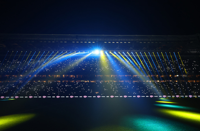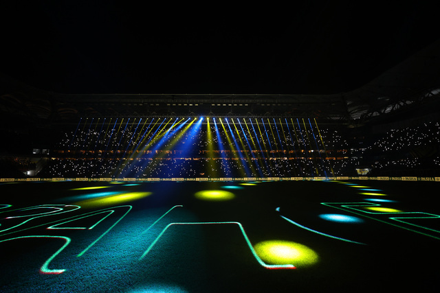 Stadın tüm tribünlerinde sarı lacivert kartonlar açıldı.