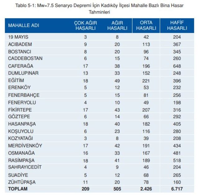 7 ve 8 aralığında olası bir depremde Kadıköy'ün Kurbağlıdere vadisi daha çok etkilenecektir. Merdivenköy, Zühtüpaşa, Caferağa, Osmanağa’da etki söz konusu" diye belirtti.