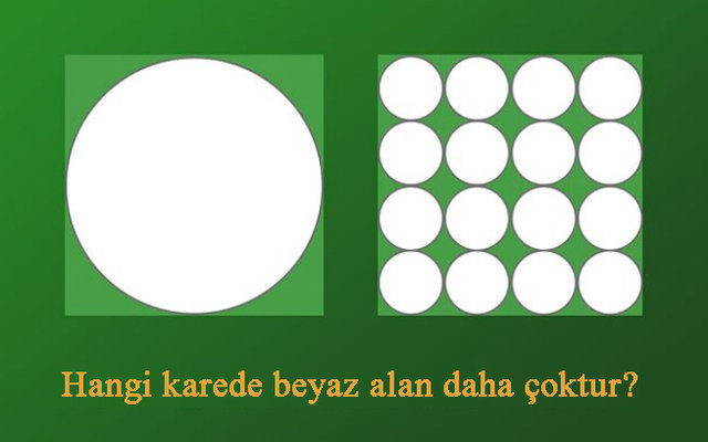 Sağdaki tek bir dairenin alanı: ((r/4)^2 x pi)x16 = (r^2/16) x pi x 16 = r^2 x pi