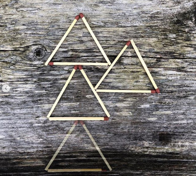 3 kibrit çöpünün yerini değiştirerek nasıl 4 üçgen elde edersiniz?