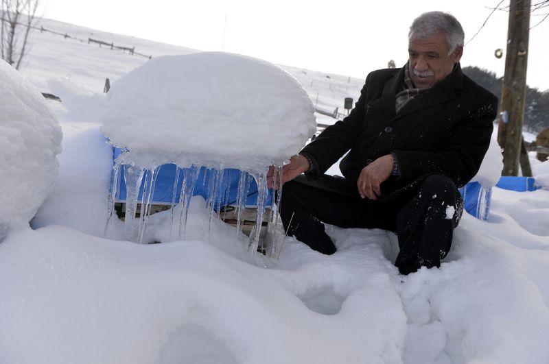 Kurdoğlu köyünde arılarını kışın açık alanda bırakan Ahmet Yıldız da "Bu uygulamaya 2 yıl önce başladım. 90 kovan arımın tamamı dışarıda. Şu an hiçbir kaybım yok. Şunu gördük ki açık alanda kışlatmak daha sağlıklı, arı daha güçlü bahara çıkıyor ve verim artıyor" dedi.
